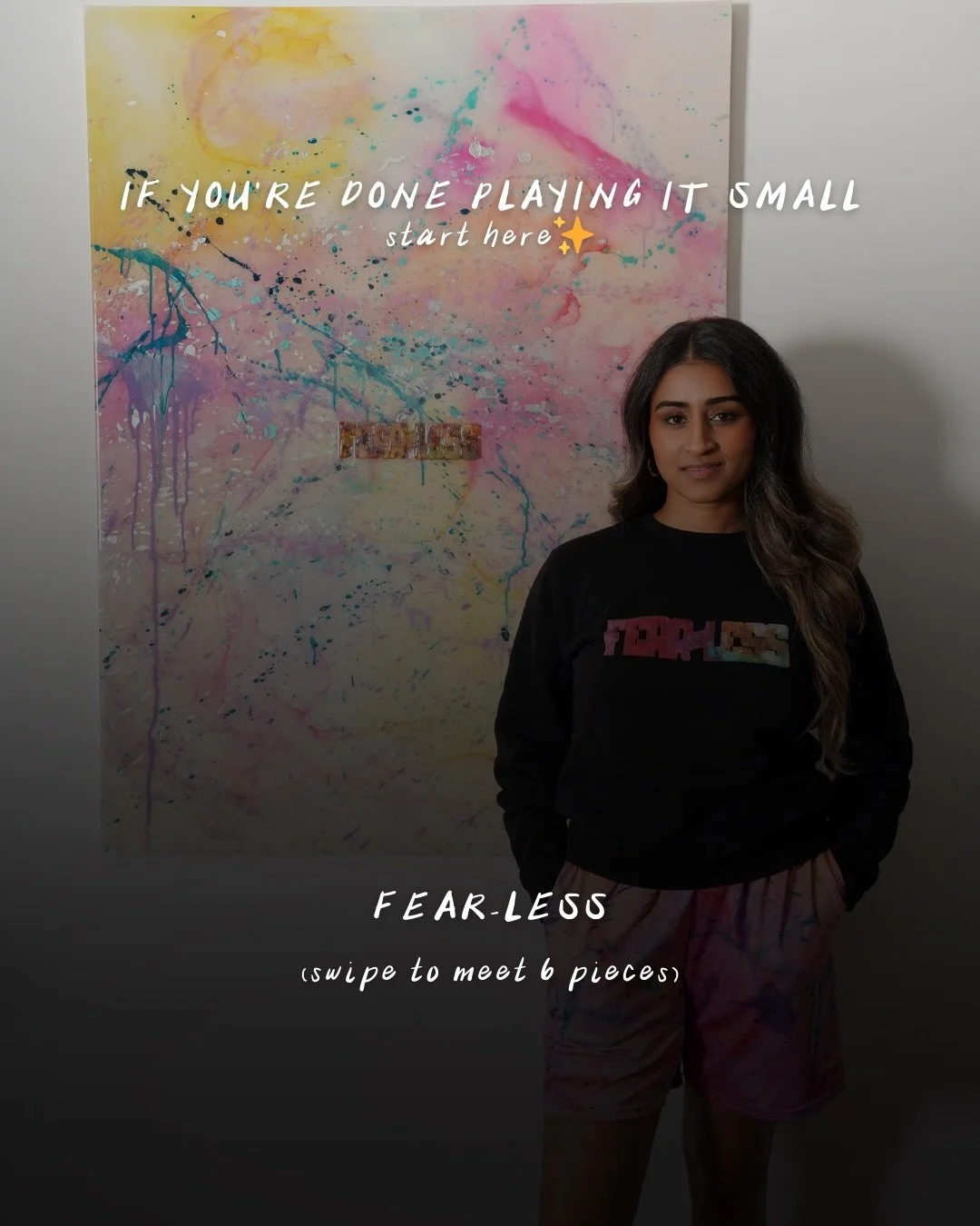 The FEAR-LESS collection is a celebration of courage, imperfection, and breaking free from fear-driven limitations. Each piece in this collection embodies a personal journey of trying new techniques and embracing uncertainty, creating art that reflects freedom and growth.