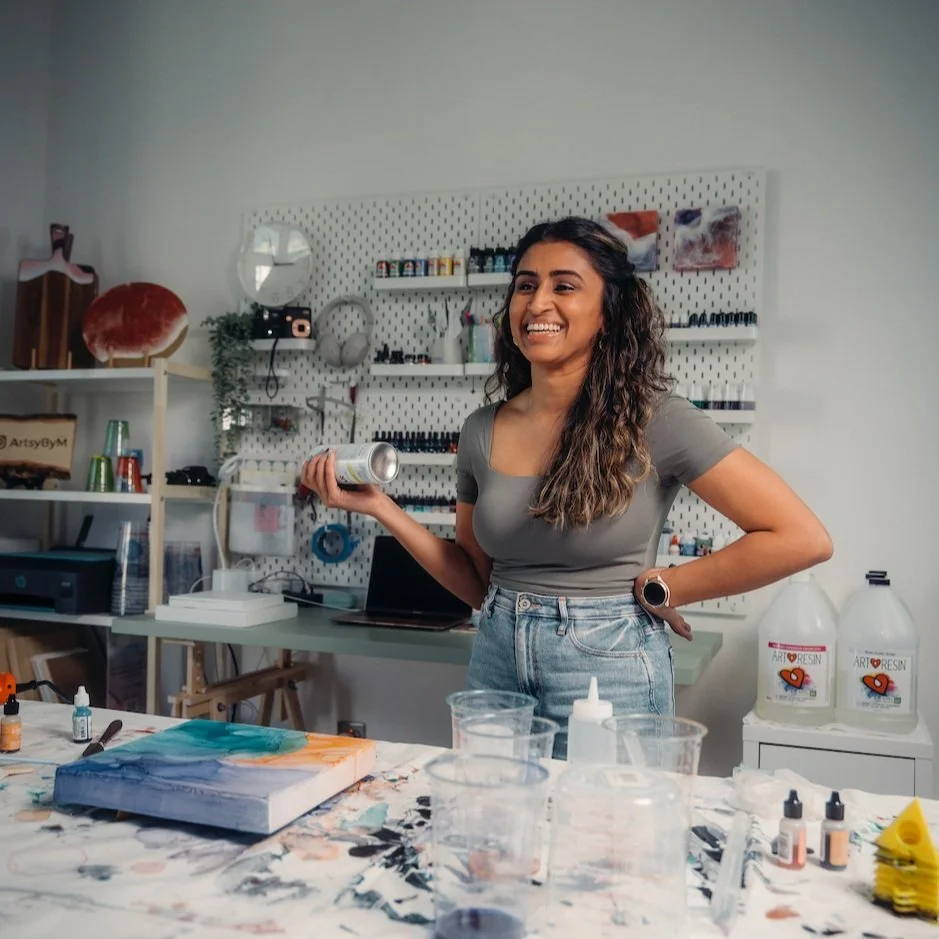 Step-by-step guidance – Learn the basics of alcohol inks and resin, guided by professional artist Marlis Dsouza. Perfect for beginners or makers looking to explore new techniques.